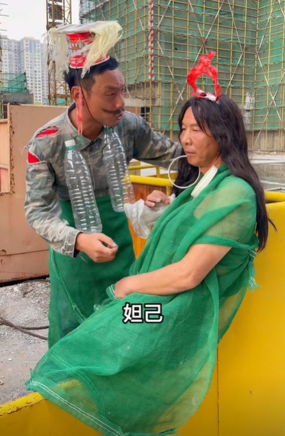 工地布景,接地气的说念具,加上夸张搞笑又天真形象的演绎,让他被称为“工地王宝强”。